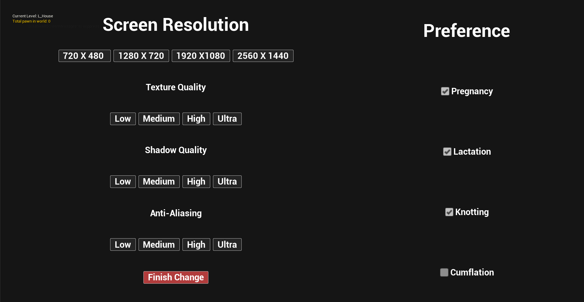 All NPCs now have their own sexual experience system. For example, if you cumflate one specific npc after multiple times, she'll level up on the kink and develop traits like 'Like cumflation', which will increase the cum capacity cap. And if you make her cum during vaginal sex, will increase her vaginal experience, which make her more aggreable to vaginal sex.